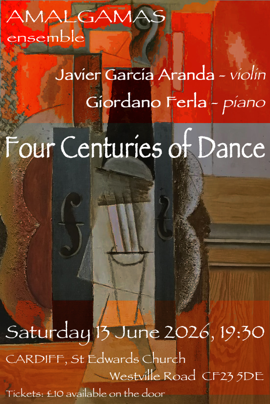 Amalgamas proposes a unique concept built on the contrast between early Baroque music of Matteis and Bertali, and music inspired by that era, such as Tartini’s Sarabanda or Vitali’s Ciaccona, probably reinterpreted through a twentieth-century lens, along the world premiere of the Spanish dances composed by Charlie Barber.