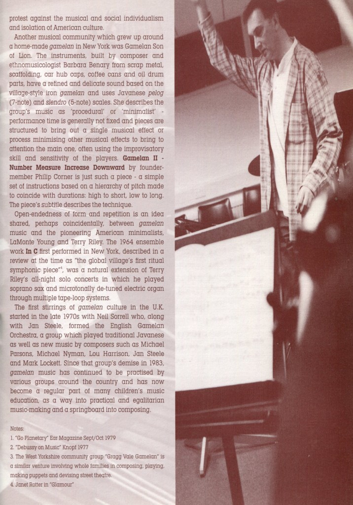 “Last night, metaphorically at least, The Point became a temple for a programme inspired by Javanese gamelan music. Ever since the great Exposition of 1889 when gamelan ensembles were brought to Paris to perform, this music has exercised amazing powers of seduction. Claude Debussy was one of the first composers to incorporate the gently exotic sounds of Eastern gongs into his music and the fascination shows no signs of abating a century on.