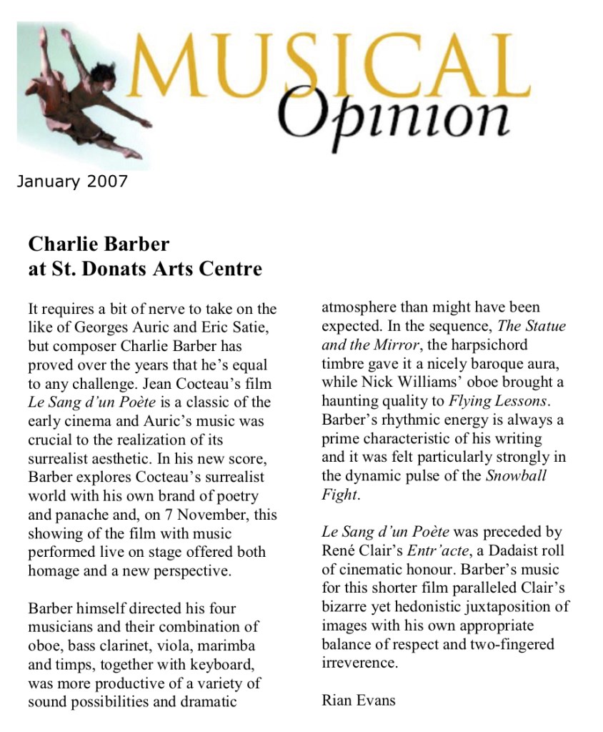 First performance at Chapter Cinema, Cardiff on 28 October 2006