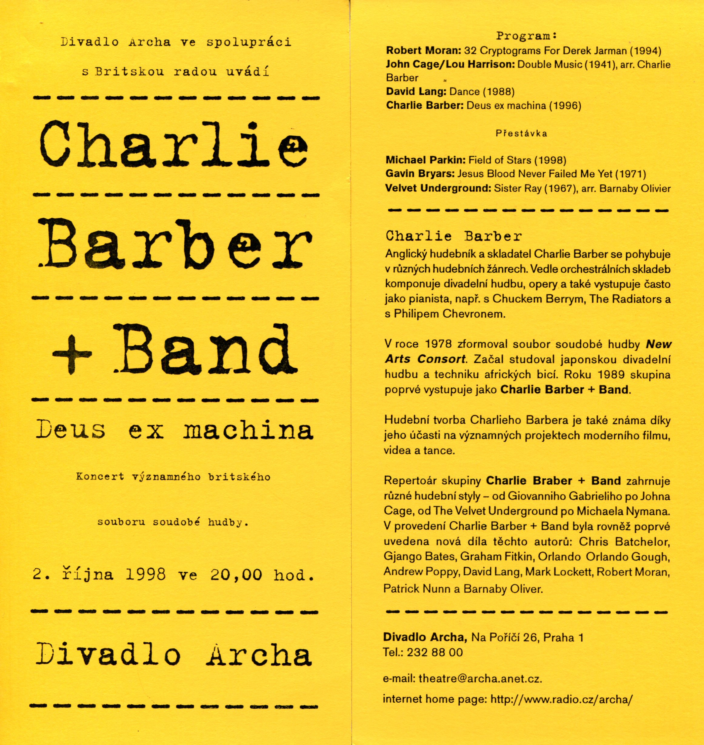 | 02.10.98 | PRAGUE | Theatre Archa |