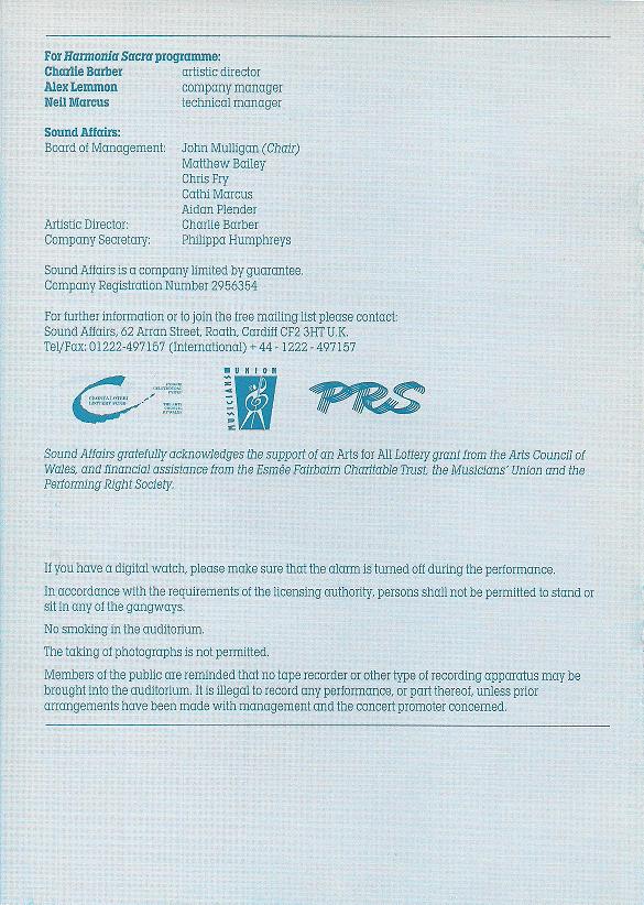 Produced by Sound Affairs with the financial support of: Arts Council of Wales, British Council, Esmรฉe Fairbairn Charitable Trust, Performing Rights Society, Britten-Pears Foundation