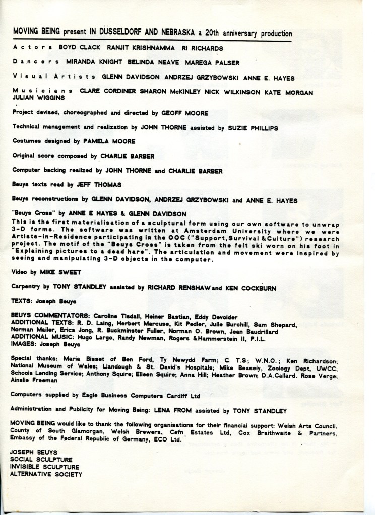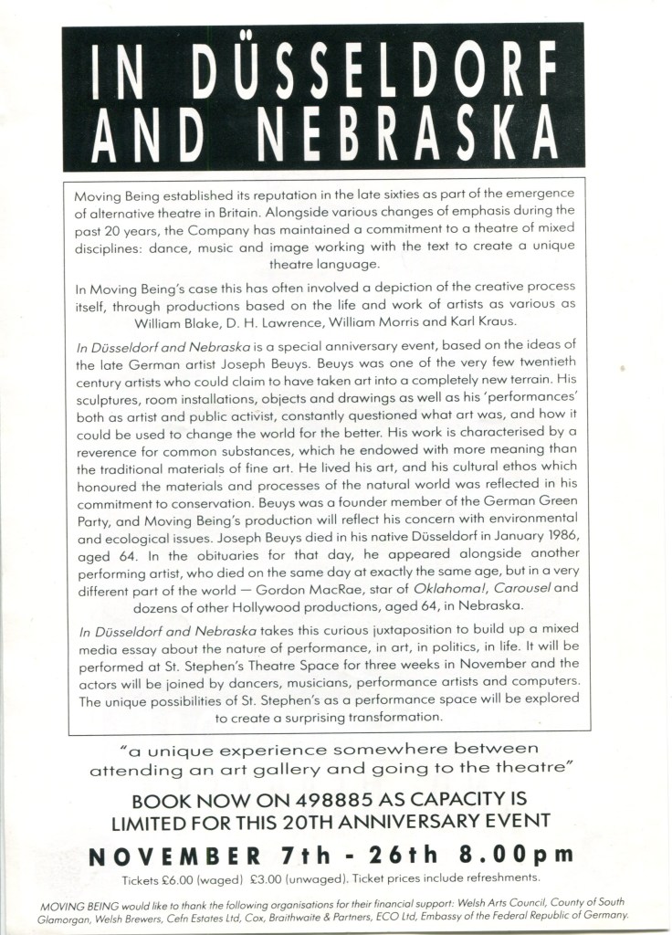 | 07 – 26.11.88 | CARDIFF | St Stephen’s Theatre Space |