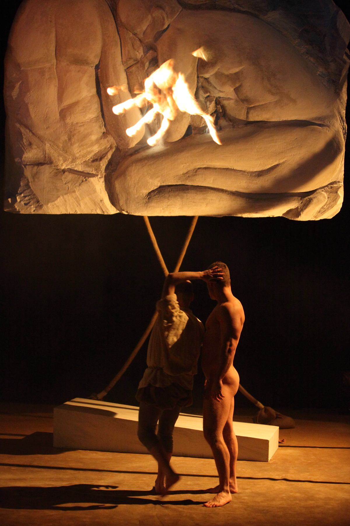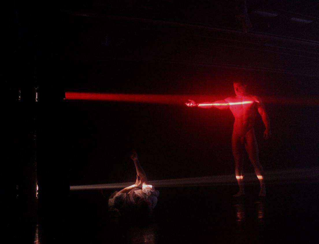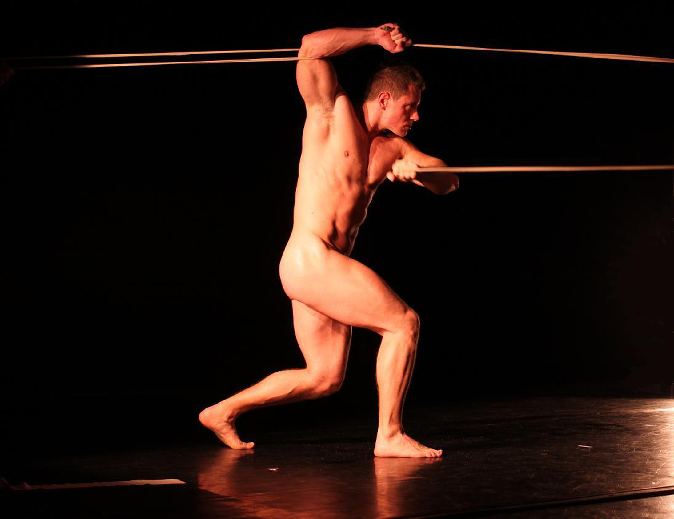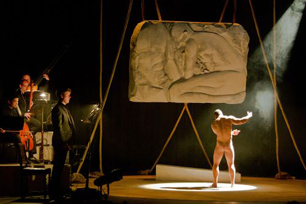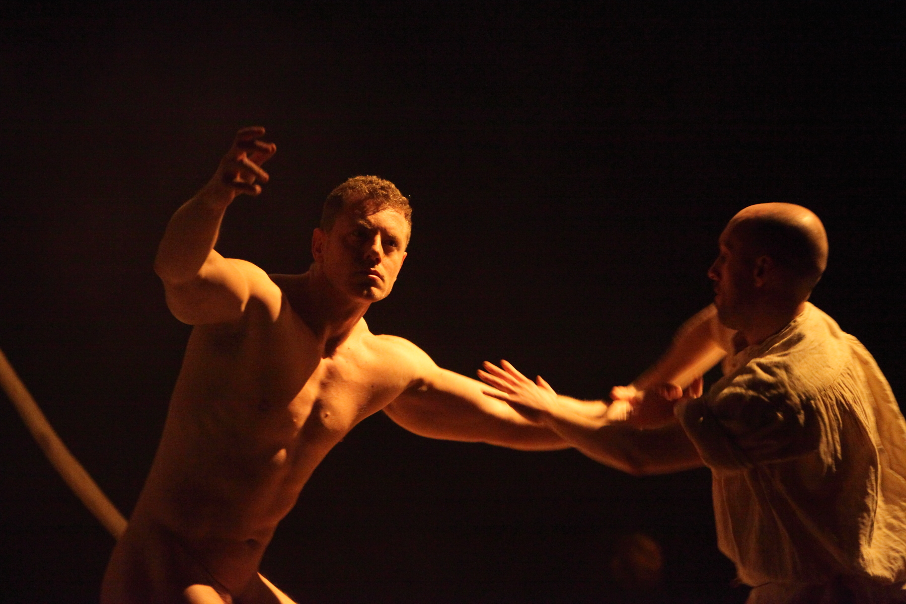 “This extraordinary piece of music theatre, created by Sound Affairs, is almost in the nature of a seance, a hypnotic blend of music, dance and theatrical staging which uses cleverly arranged light structures in a compelling way. The general theme is based on the sketches Michelangelo drew up for the Battle of Cascina a fresco he never completed. Two dancers present the artistโs strivings as he dreams of the fresco, he will never bring into the light. Here male nudity is used throughout the evening to underline Michangeloโs adoration of the male body as a conduit to the mind of God. This is bravery of a kind I rarely meet with in the theatre.”