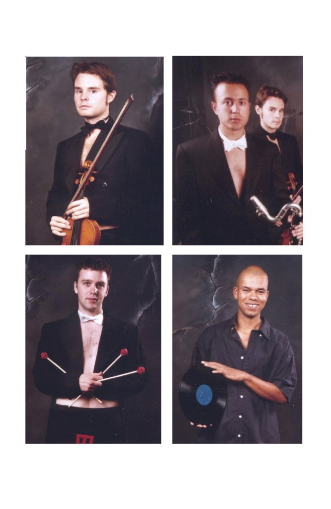 vln, b cl, perc (marimba & bongos), DJ