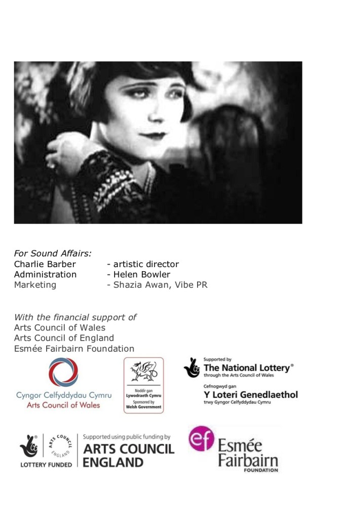 Produced by Sound Affairs with the financial support of: Arts Council of Wales, Arts Council of England, Esmรฉe Fairbairn Foundation