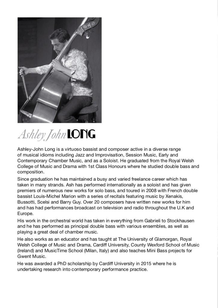 First performed on 5 October 2018 at Swansea Festival with Michele Batani (oboe), Mavron Quartet, Ashley John Long (double bass)