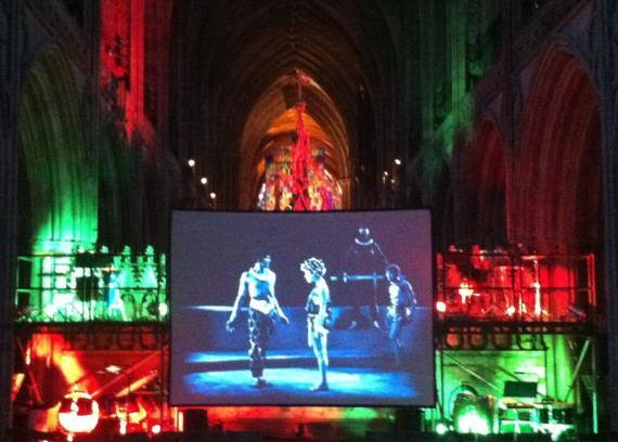 Inspired by traditional Arabic ensembles, Charlie Barber’s percussion score makes an equally dramatic impact. Performed by musicians playing from two towers flanking each side of the giant silver screen, this is a riveting blend of music and spectacle – quite unlike anything else.
