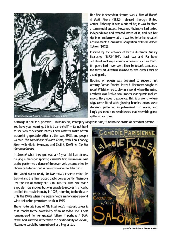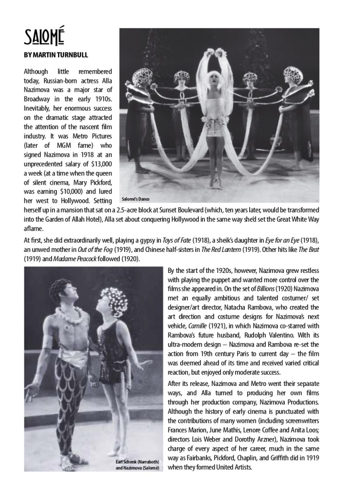 Opulent, extravagant, decadent – Salomé is a visual feast furnished by lavish art nouveau designs inspired by artist Aubrey Beardsley and an unforgettable performance by the tempestuous actress Alla Nazimova in the title role.