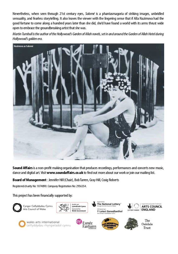Produced by Sound Affairs with the financial support of: Arts Council of England, Arts Council of Wales, Colwinston Charitable Trust, Esmée Fairbairn Foundation, Oakdale Trust