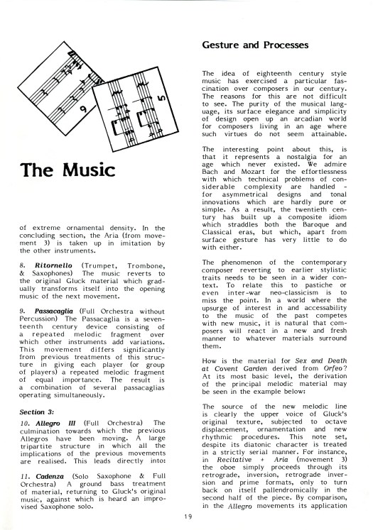 A musical fragment from Christoph Williband Gluckโs opera Orfeo ed Euridice (1762), provides the starting point for the work.