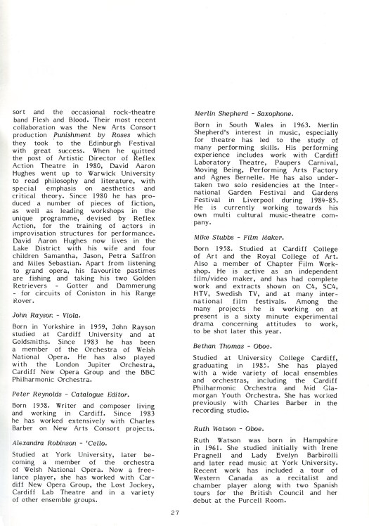 | 02.05.86 | CARDIFF | National Museum of Wales | New Arts Consort |