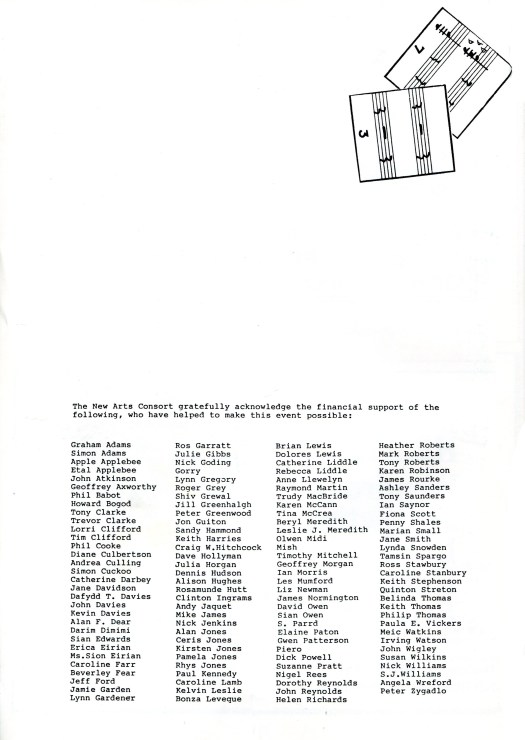 Produced by New Arts Consort with the financial support of Arts Council of Wales