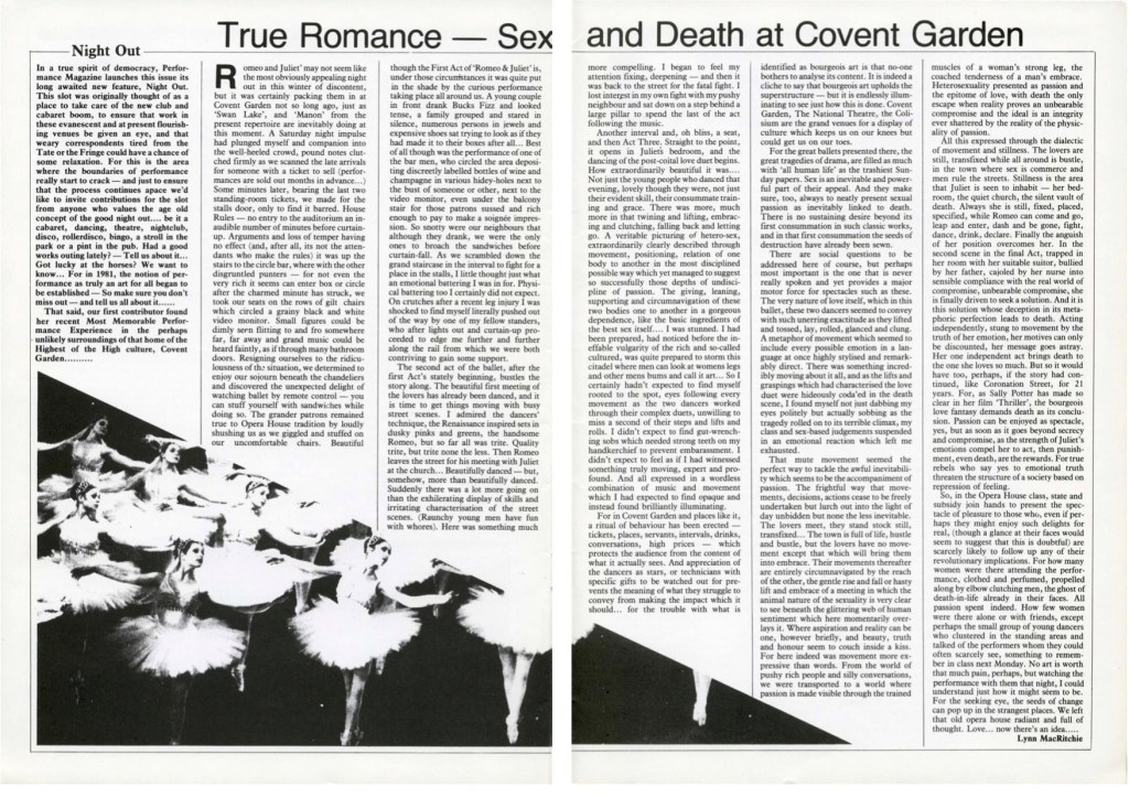 Lynn MacRitchie article, Performance magazine, Issue 16, March 1982