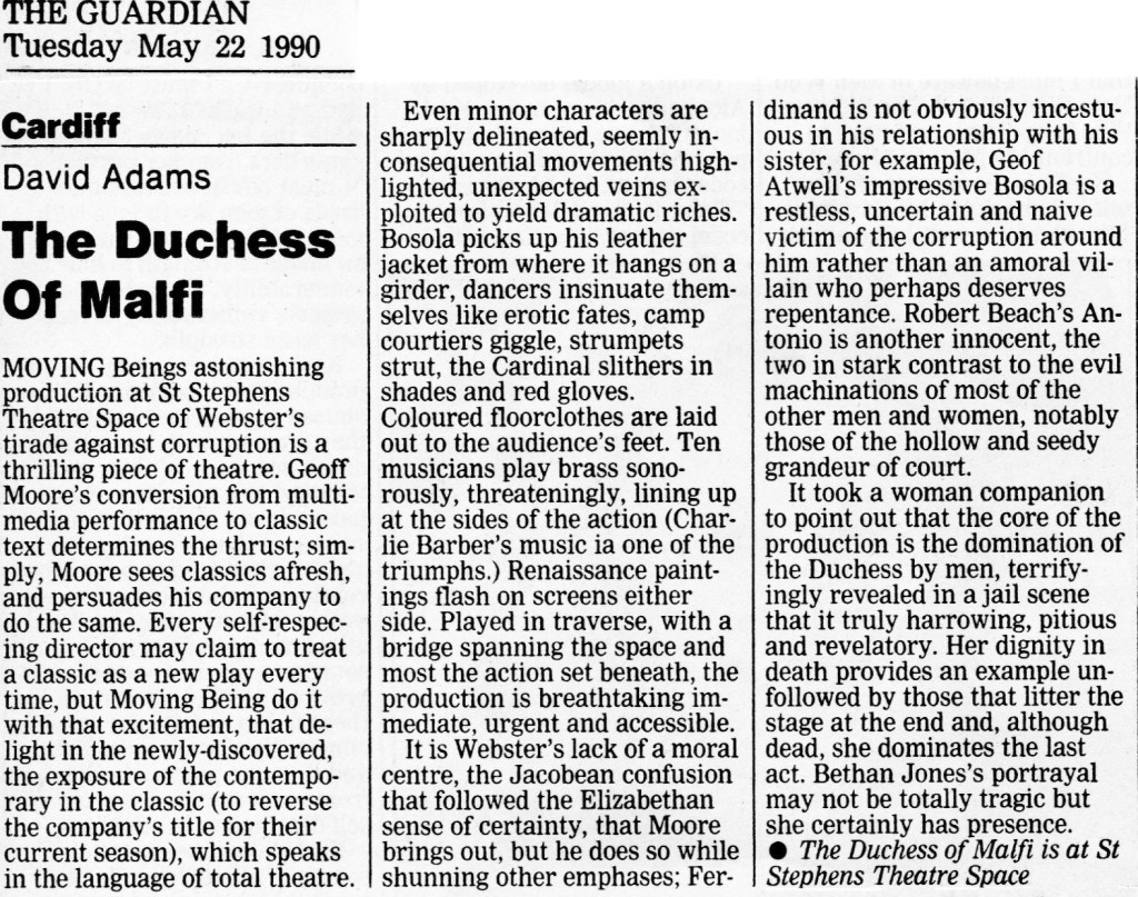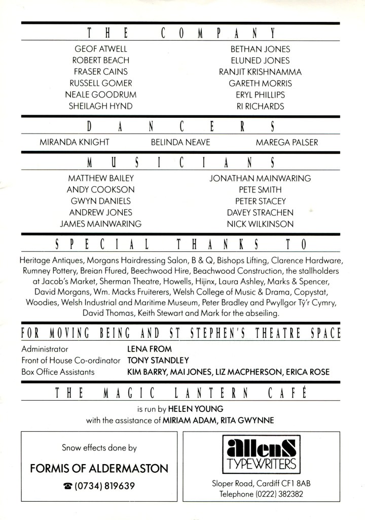 First performed at St Stephen’s Theatre Space, Cardiff on 14 May 1990